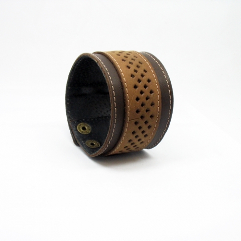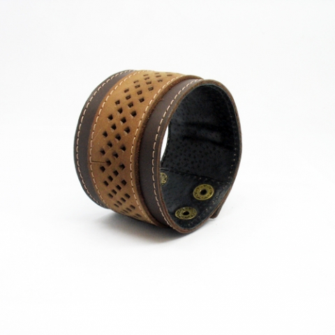 Браслет выполнен из натуральной кожи. Застежка кнопка.Для декора использована полоса перфорированой кожи. Подойдет как мужчинам так и женщинами .