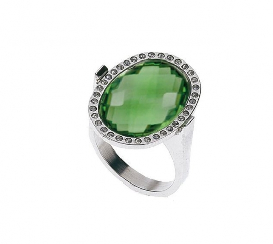 Женское кольцо "Infinity" из ювелирной стали с большим камнем цвета перидота и белого хрусталя.